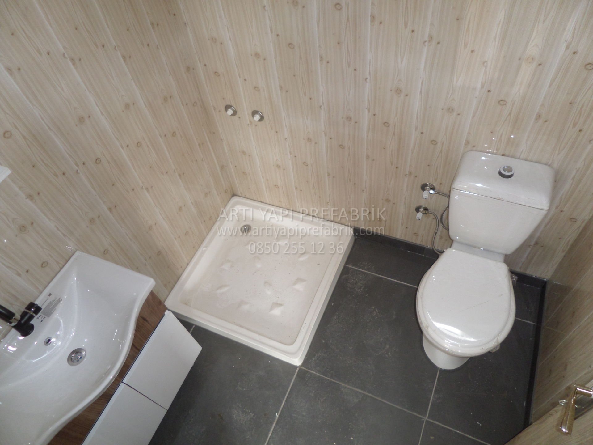 Tavan ve wc bölmesi pvc beyaz lambri kaplamadır. (opsiyonel olarak ahşap desen pvc lambride yapılır)