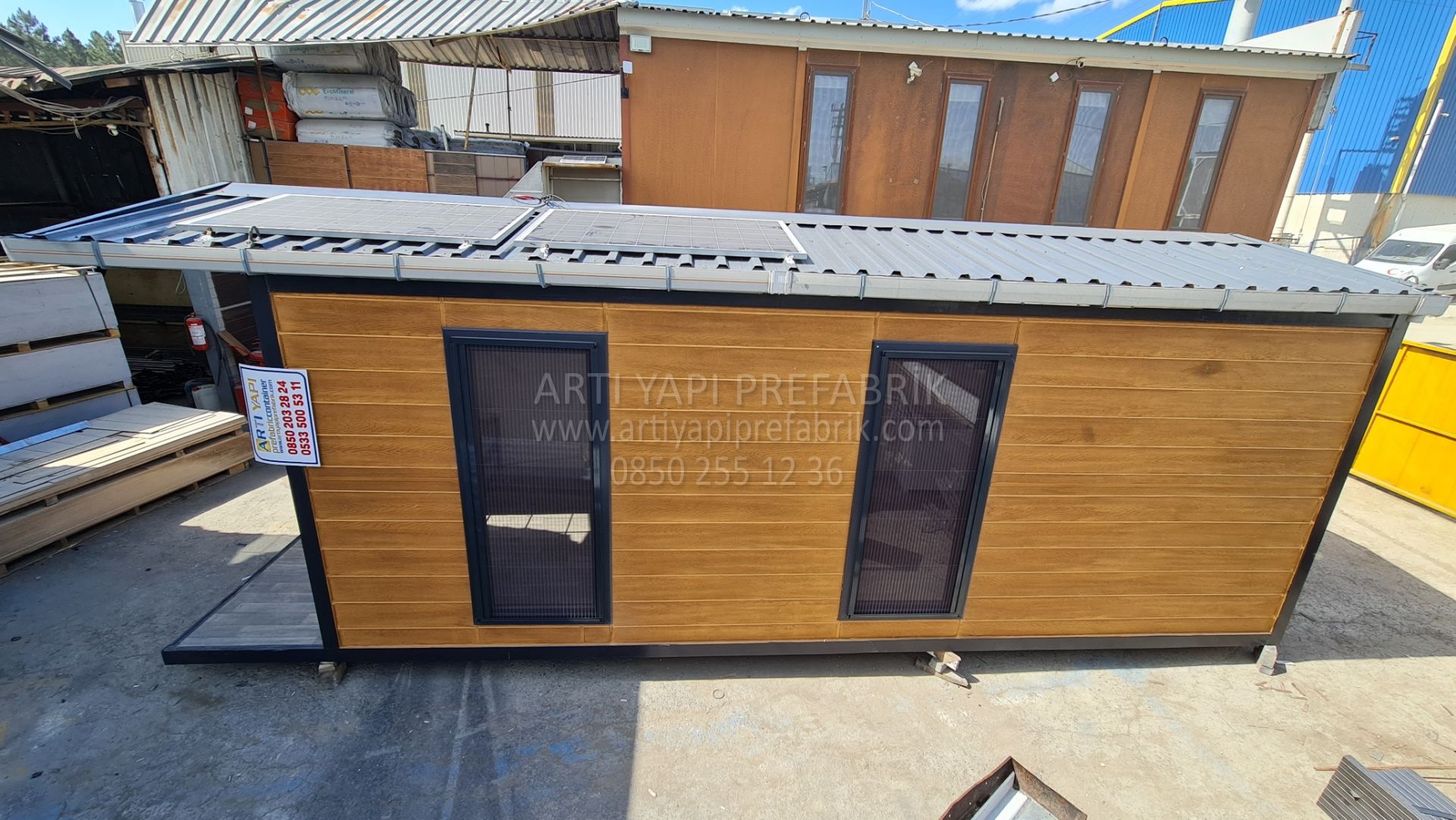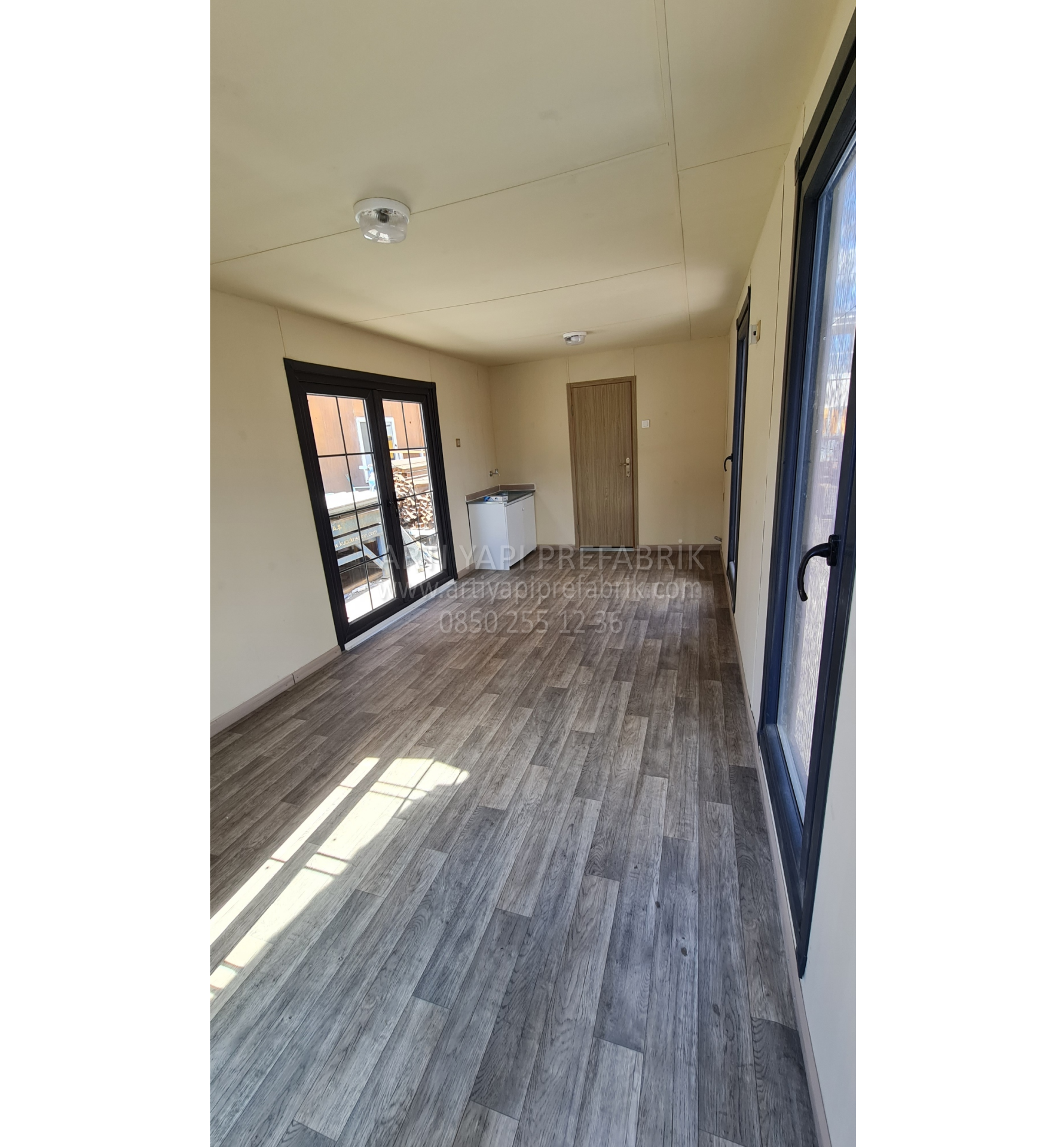Dıştan dışa net ölçüsü 3 x 8 'dir. Toplam 24m2'dir Tek oda, wc, duş ve mutfaklıdır. İsteğe göre 4x7 -4x8 ya da daha büyük ölçülerde üretimlerimiz de vardır.
