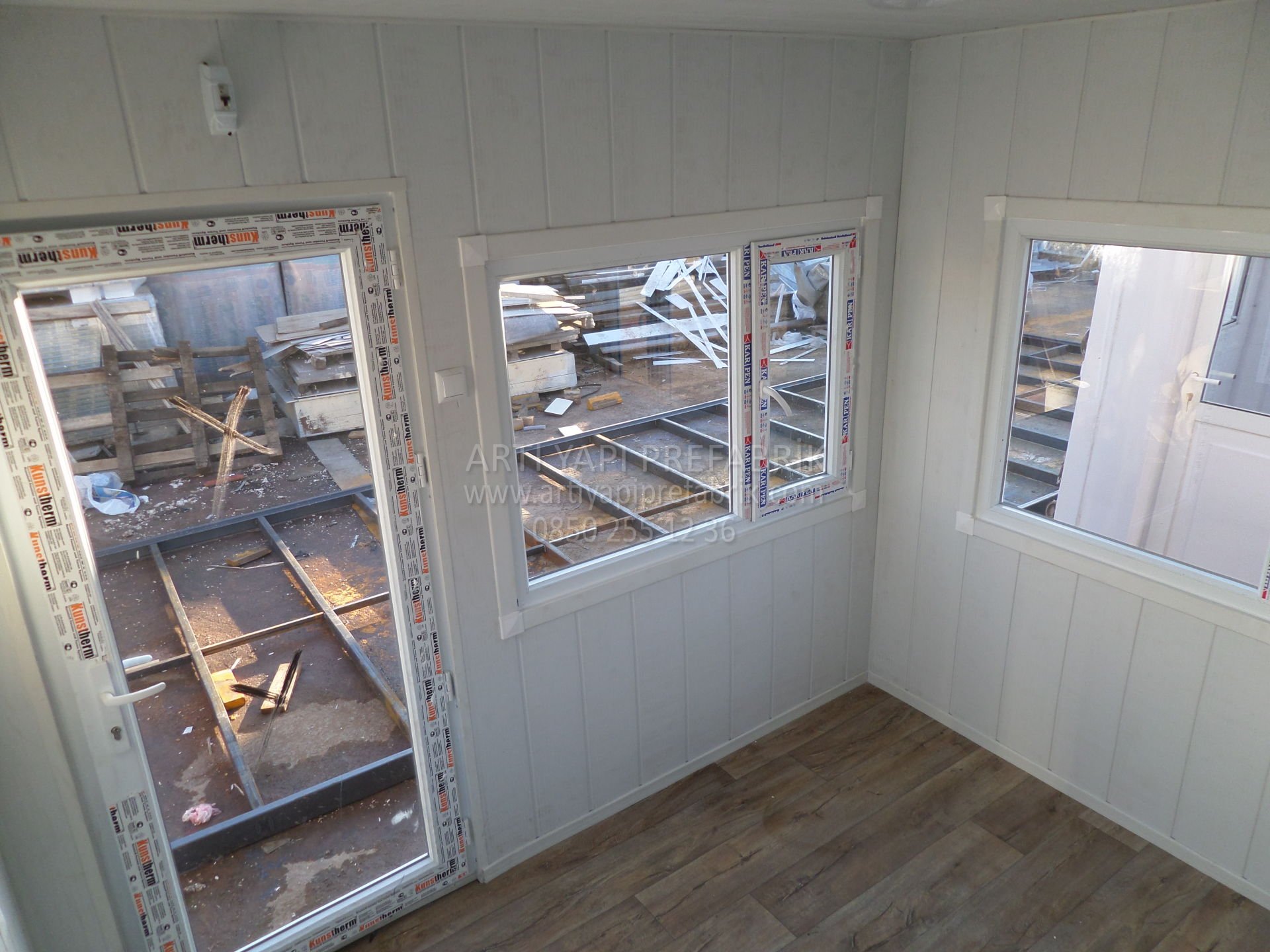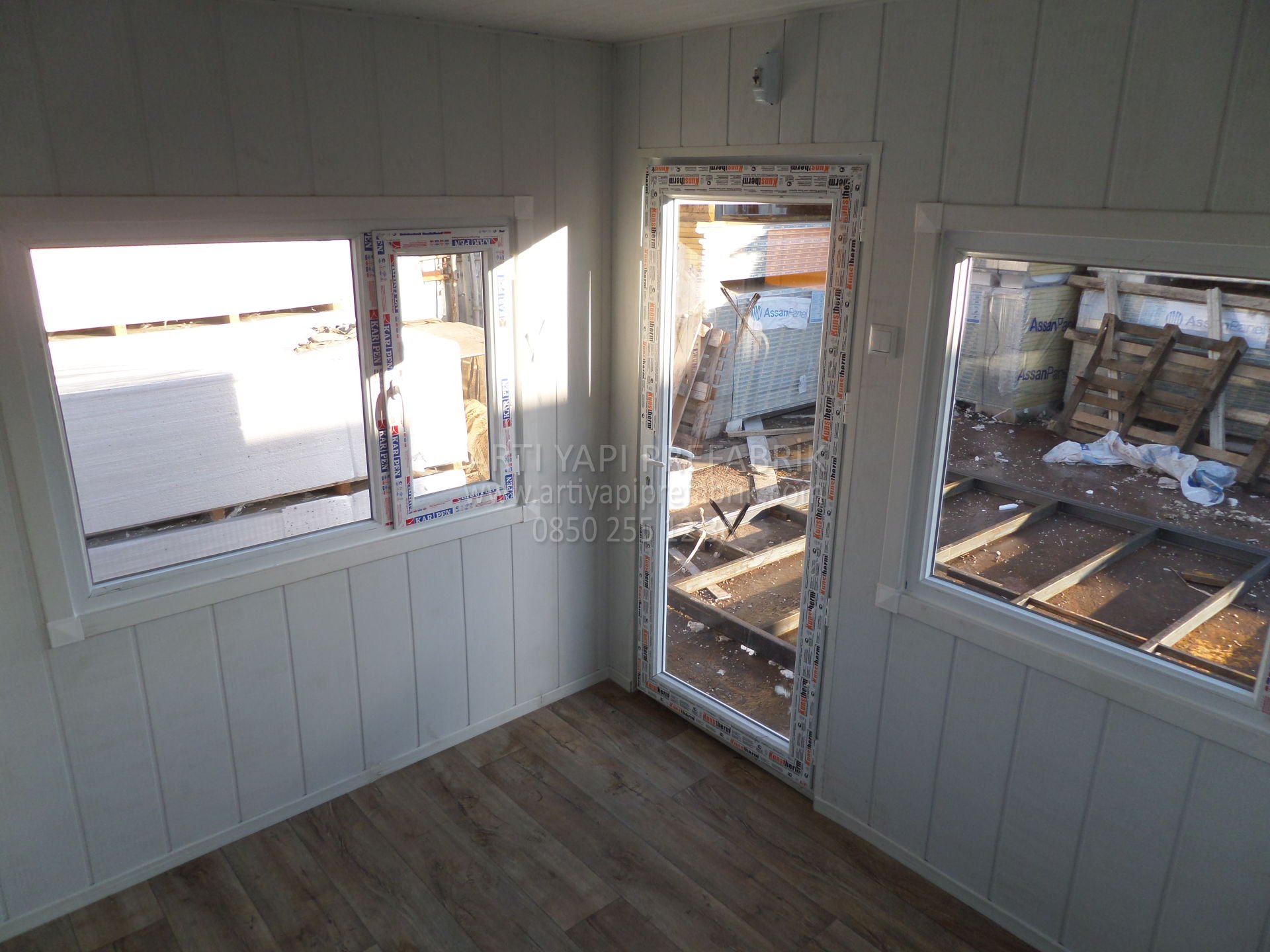 İÇ VE DIŞ DUVARLAR YÜKSEK İZOLASYONLU BETOPAN KAPLAMADIR. DUVARLARA TV KLİMA RAF GİBİ EŞYALAR ASILABİLİR
