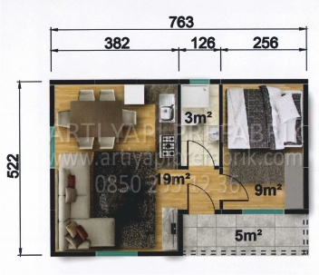 40m2 PREFABRİK EV MODEL NO : ARTP100