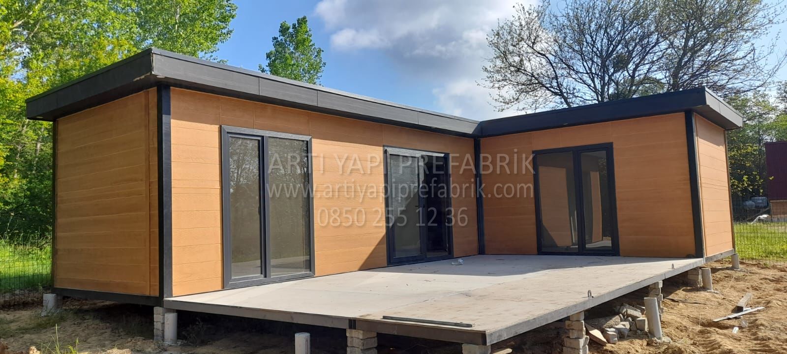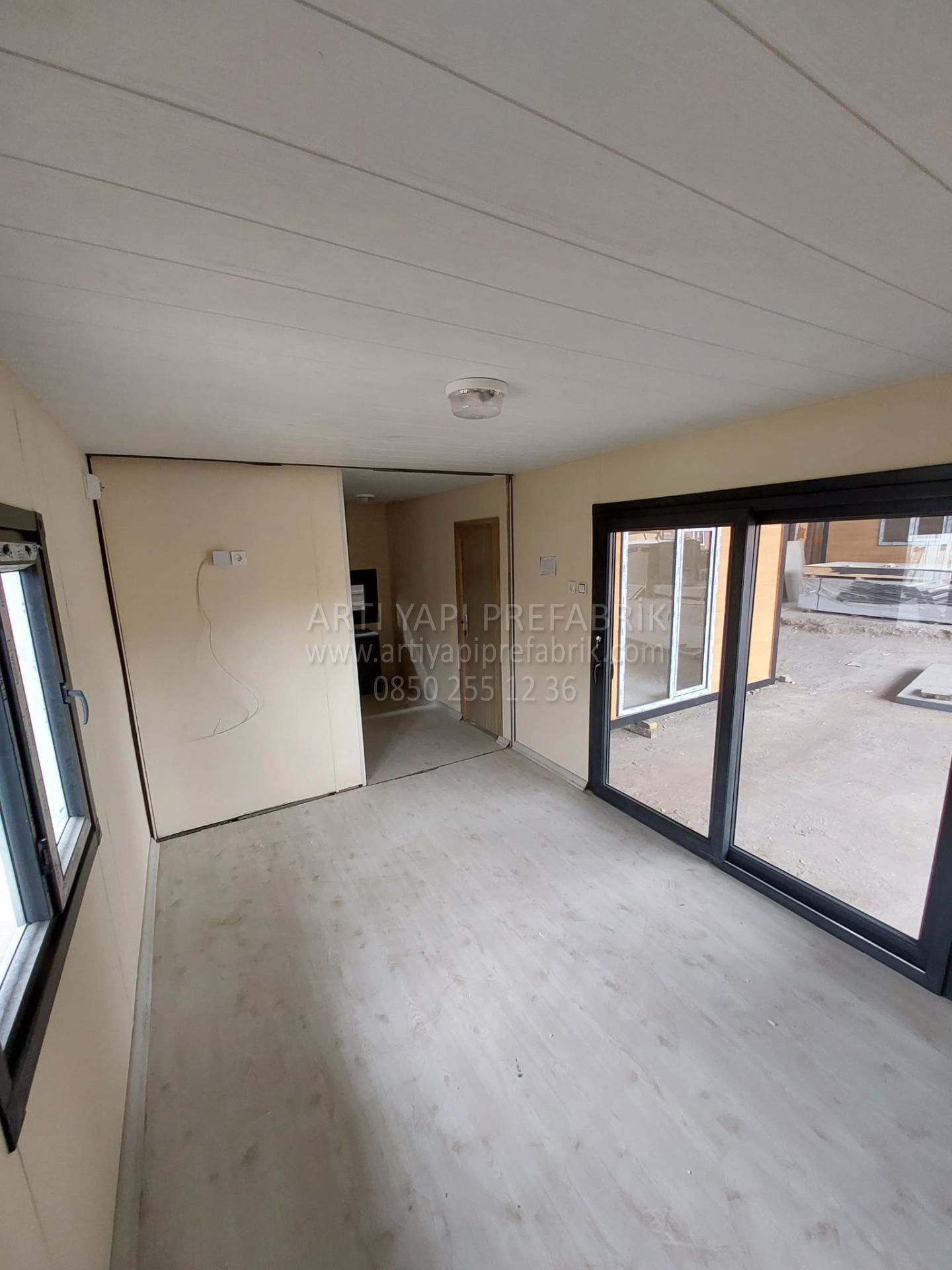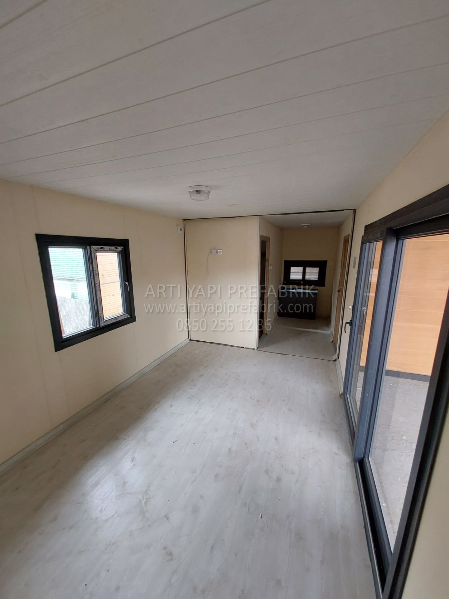 Toplam 42m2 iç kapalı alanı vardır. İsteğe göre konteyner evin üstüne çatı ve önündeki boş alana da 28m2 veranda yapılır. Çatılı ve verandalı net ölçü 70m2 olmaktadır.