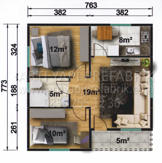 59m2 PREFABRİK EV MODEL NO : ARTP105