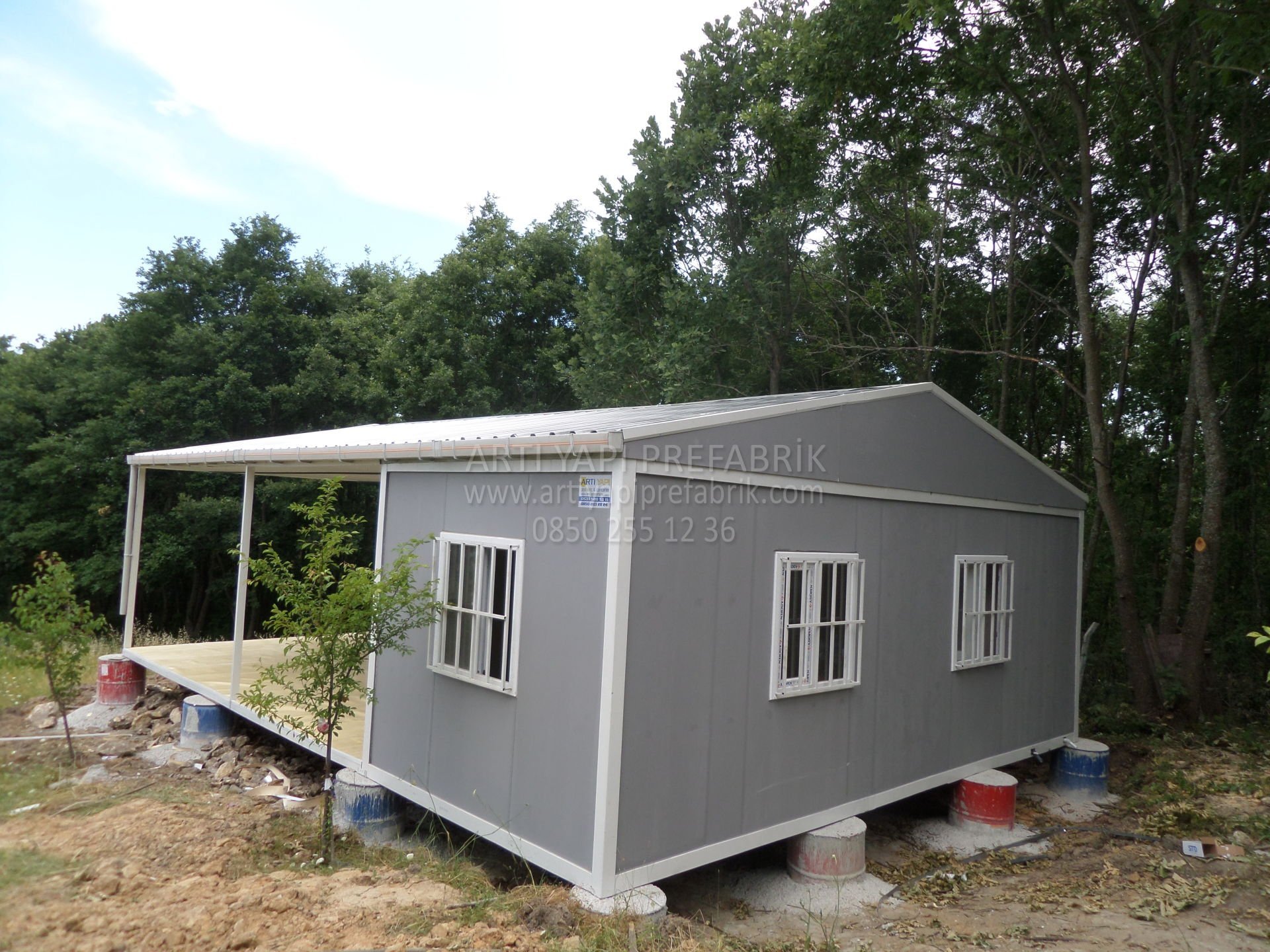 Tüm elektrik ve su tesisatı yapılıdır. Zemin betonu gerekmez. Zemin betonu yerine bordür taşlar üzerine de montaj yapılabilir.