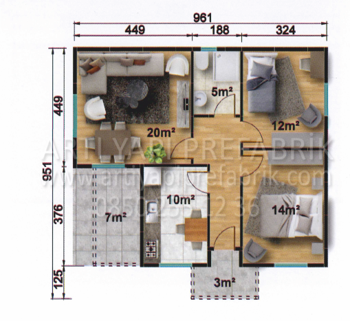79m2 PREFABRİK EV MODEL NO : ARTP114