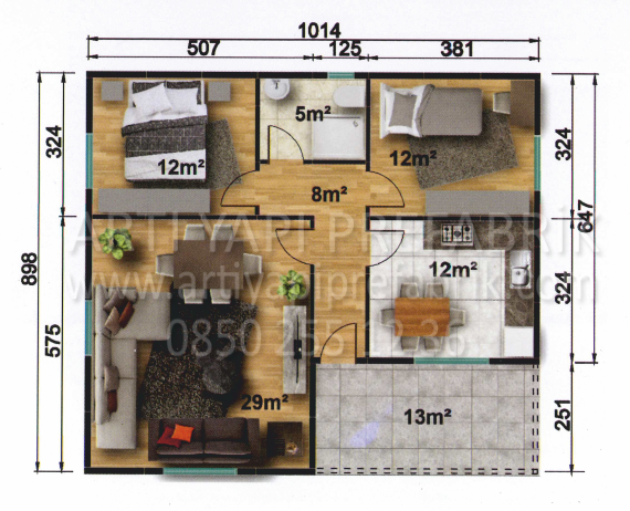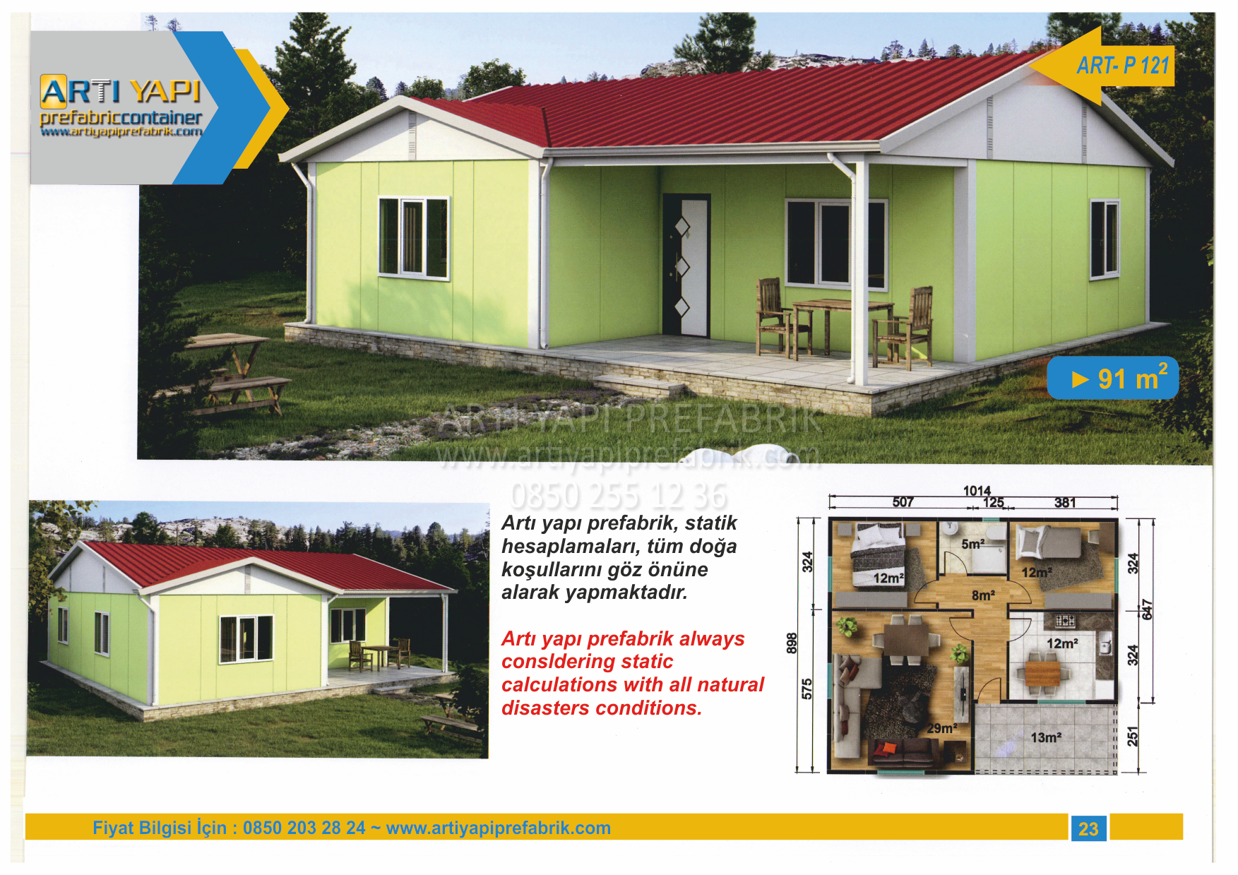 91m2 PREFABRİK EV MODEL NO : ARTP121