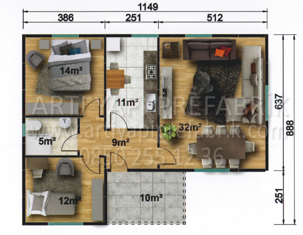 93m2 PREFABRİK EV MODEL NO : ARTP122