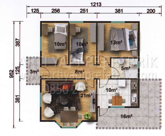 95m2 PREFABRİK EV MODEL NO : ARTP124