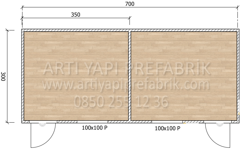 ART114 300X700 21m2 İKİ ODALI SANDVİÇ PANEL KONTEYNER