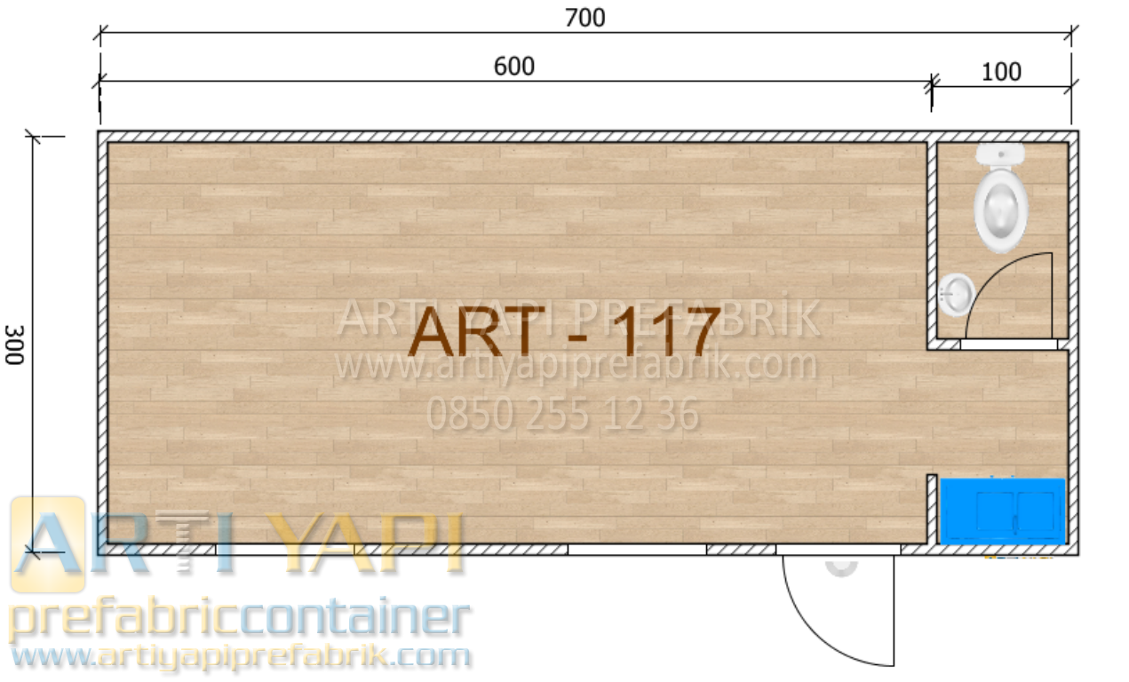 ART117 300x700 21m2 TEK ODALI SANDVİÇ PANEL KONTEYNER
