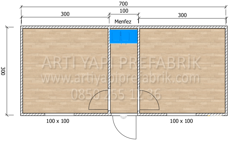 ART119 300x700 21m2 İKİ ODALI SANDVİÇ PANEL KONTEYNER