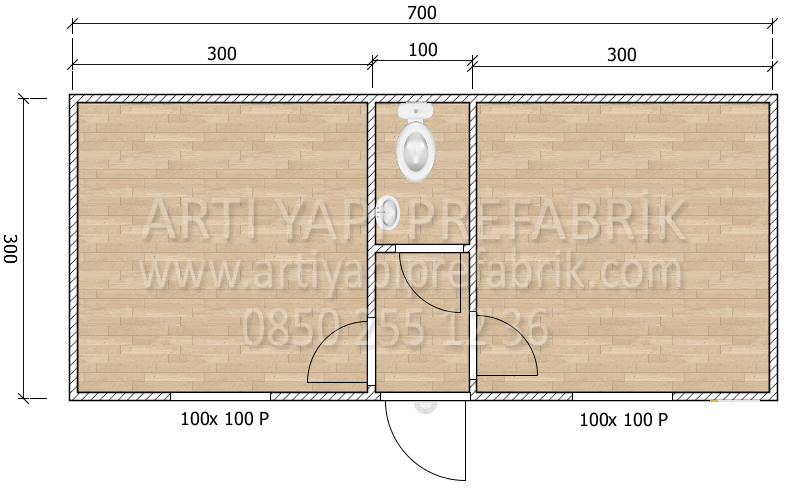 ART120 300x700 21m2 İKİ ODALI SANDVİÇ PANEL KONTEYNER
